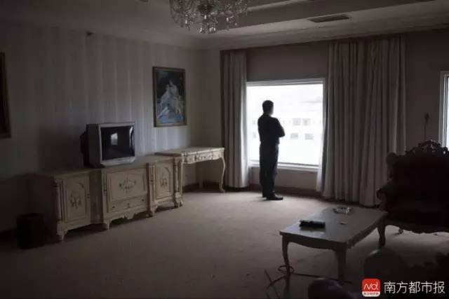 黃河山站在已經停止營業的客房部窗前,豪華套間的家具已經蒙上厚厚的灰塵,窗外是與酒店一路之隔的工廠區,大部分工廠宿舍已人去樓空。