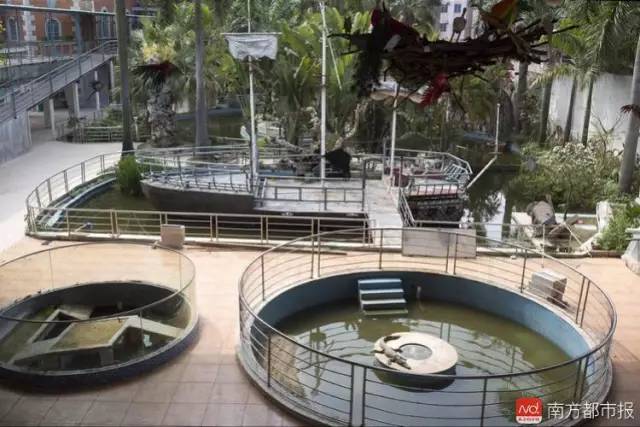 昔日露天叢林的水池裡如今圈養了兩條鱷魚,有人走近的時候,警覺的鱷魚偶爾會表現出其原始的攻擊性。